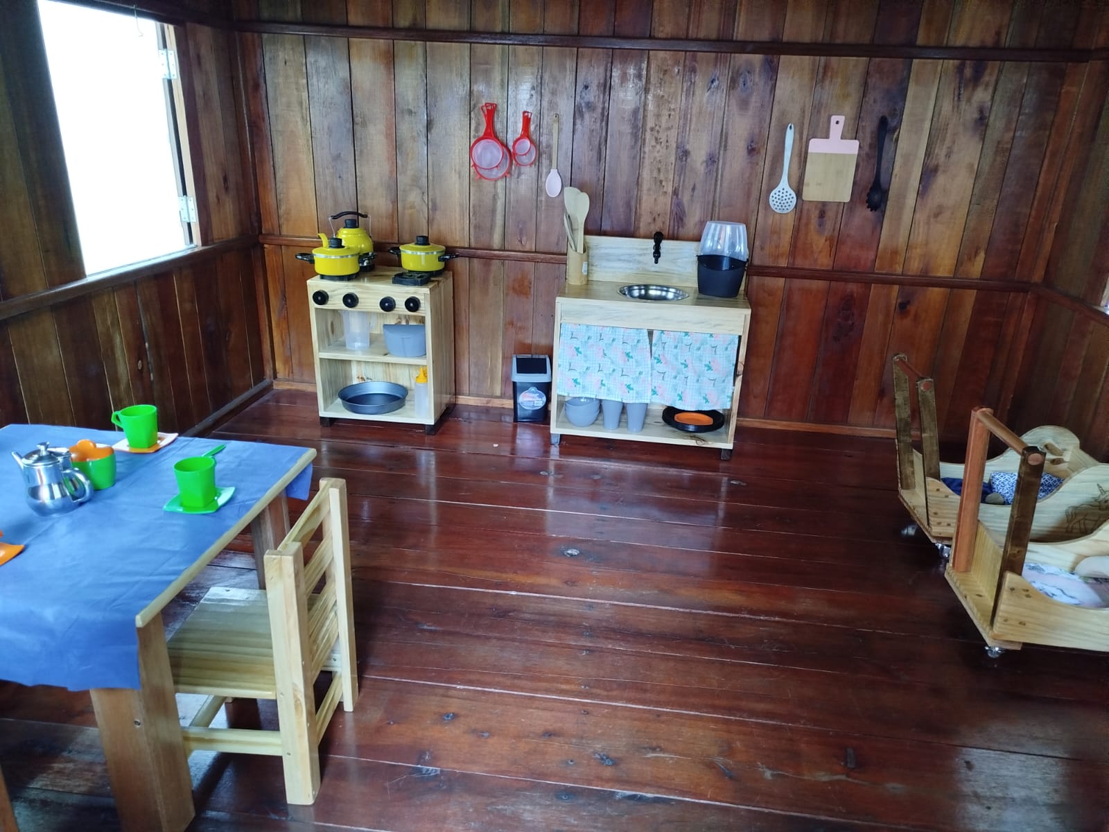 "A organização do espaço e o material que você coloca lá têm um papel essencial em facilitar o relacionamento e a interação da criança. Seja um espaço nobre ou apenas cadeiras e mesas, tudo influencia na forma como a criança se desenvolve", explica Horn. Assim, busca-se a aquisição de mobiliário e brinquedos em madeira para compor a casinha de madeira já existente no espaço educativo. O móveis trazem a tona um cenário ideal para reproduzirem o cotidiano, brincando de faz de conta de "cozinhar", "lavar", "brincar de casinha", assim como substituir os brinquedos de plástico por brinquedos de madeira, com maior durabilidade/sustentabilidade e significado. Brincar de faz de conta, é crucial para o desenvolvimento infantil, estimulando a imaginação, habilidades sociais e emocionais, além de fortalecer a linguagem e o pensamento simbólico. A brincadeira de casinha permite que as crianças experimentem papéis, interajam socialmente, compreendam o mundo ao seu redor. Assim, busca-se proporcionar boas memórias afetivas, onde cada peça não apenas decore, mas também contribua para o desenvolvimento e o bem-estar das crianças"